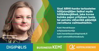 ARTEKI – Arktinen teollinen kiertotalous –hanke on toiminut jo lähes kolmen vuoden ajan Lapin alueella kiertotalouden puolestapuhujana ja tuonut alueen yritysten tietoisuuteen hiilijalanjälkeen liittyviä näkökulmia. Hankkeen aikana on tehty monenlaista kehitystyötä, mutta ehkä tärkeimpänä nostona voidaan esitellä hiilijalanjälkilaskuri, jonka avulla yritykset voivat tarkastella omaa toimintaansa ja tehdä kehitystoimenpiteitä, mikäli se on tarpeen (ARTEKI 2026.)