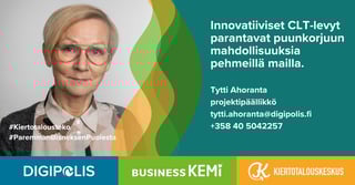 Kiertotalouden kehitystyö on ollut pitkäjänteistä jo vuosia. Lapin alueella on tehty erityyppistä yhteistyötä useiden toimijoiden kanssa ja on ollut ilahduttavaa havaita, kuinka kiertotalouden liiketoimintapotentiaalia on saatu esille enenevässä määrin. Yhteistyö Kemin Digipoliksen ja Kiertotalouskeskuksen kanssa on tuonut esille tehokkaan väylän, jossa huomioidaan eri organisaatioiden parhaat keinot viedä kiertotaloutta eteenpäin.